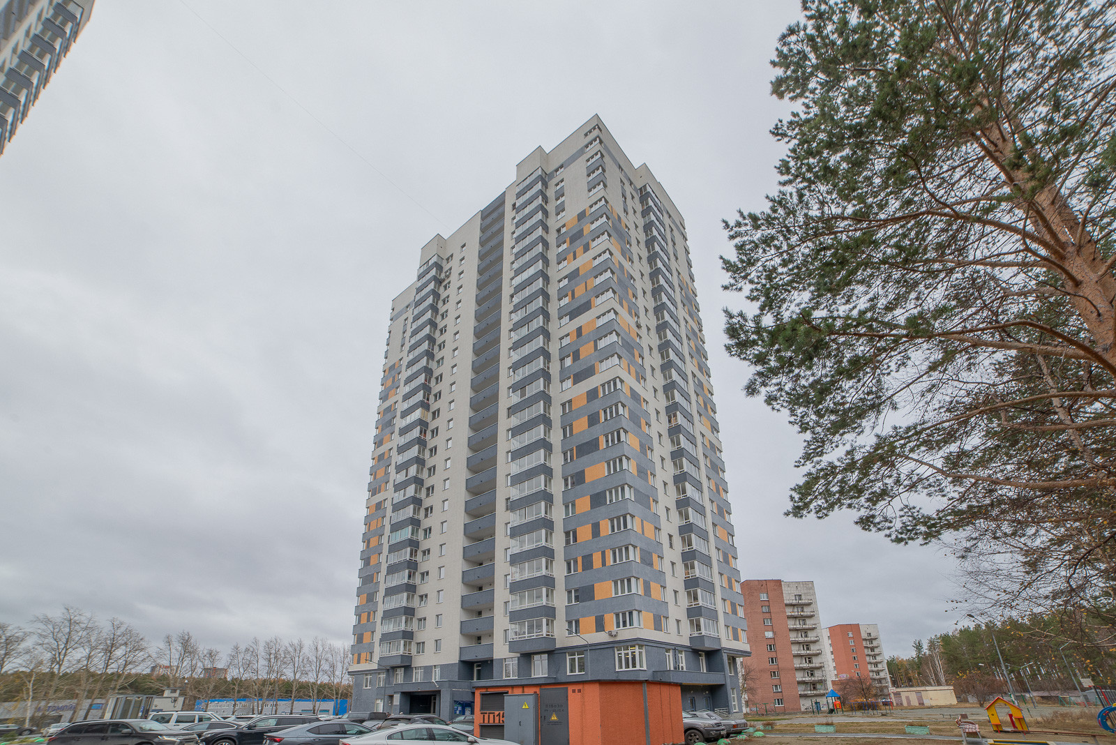 Парковка автомобилей во дворе, есть детская