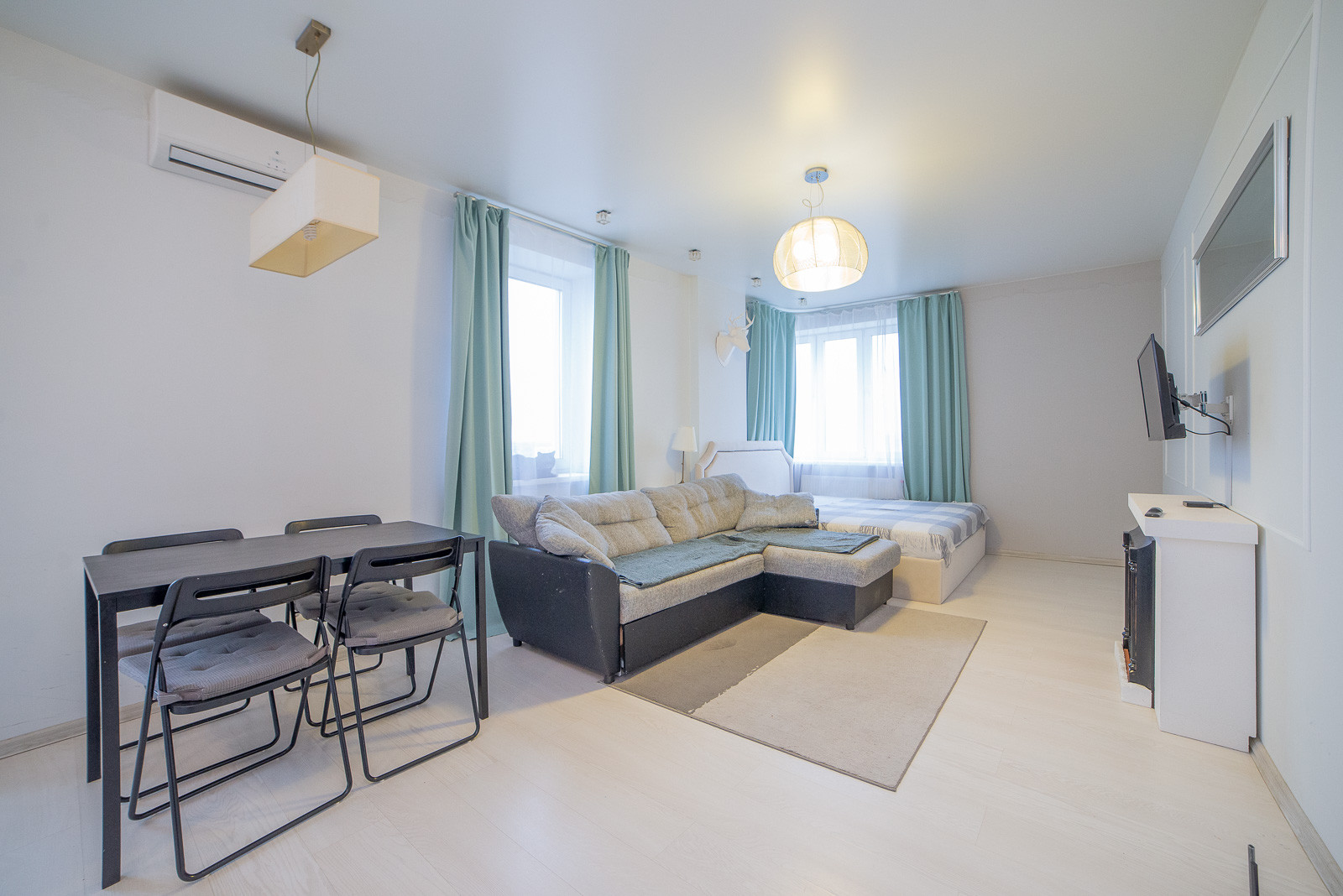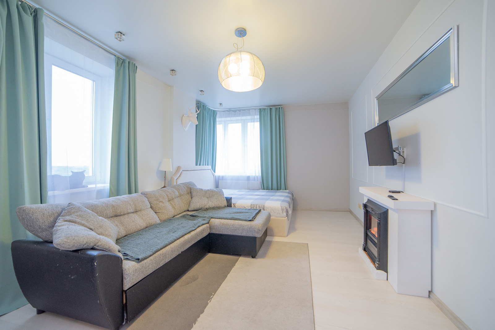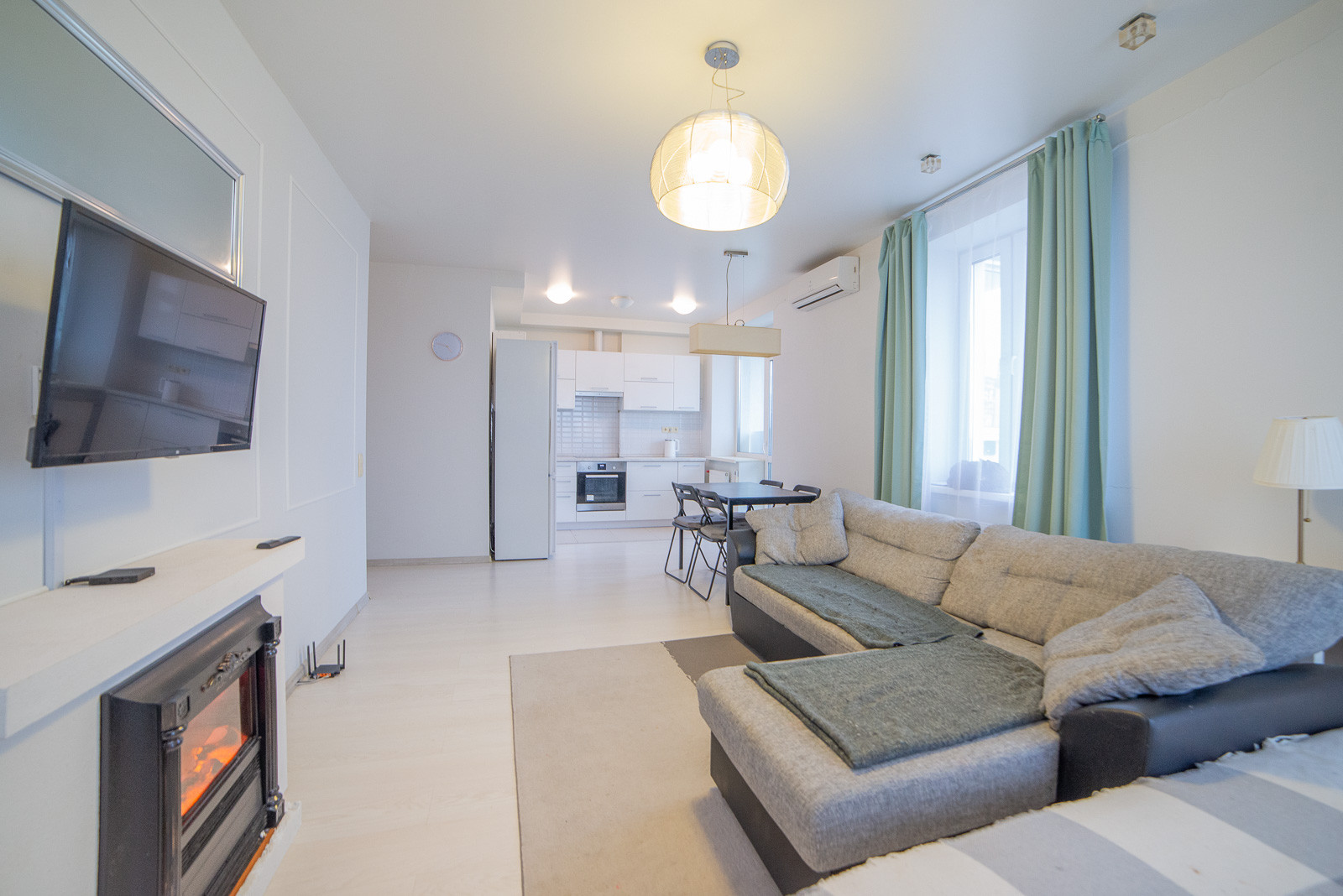 Просторная кухня-гостиная, спальня и вместительная гардеробная.
