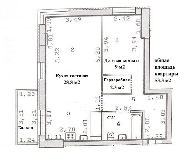 Общая площадь 53 м2