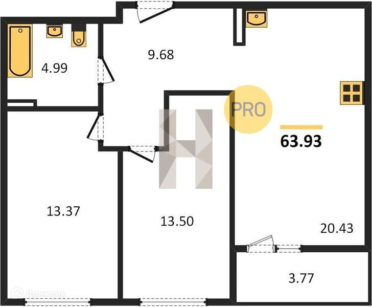 Общая площадь 63.9 м2