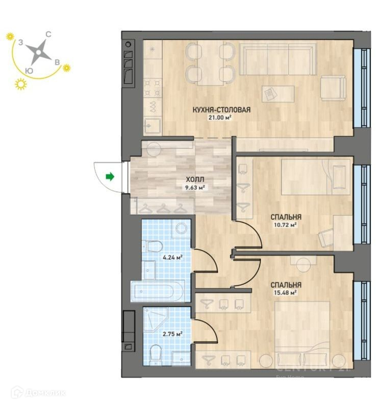 Количество комнат 2