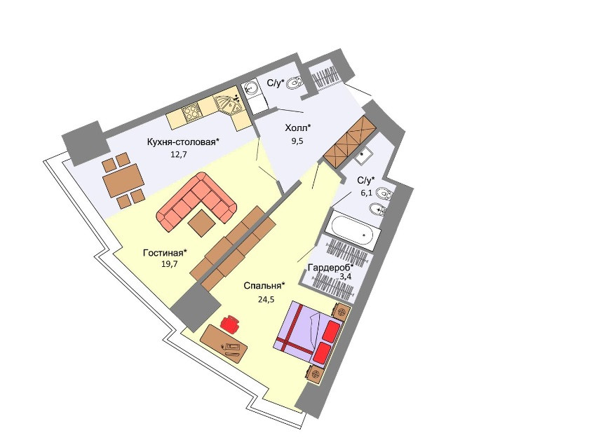 Площадь кухни 12.7 м2