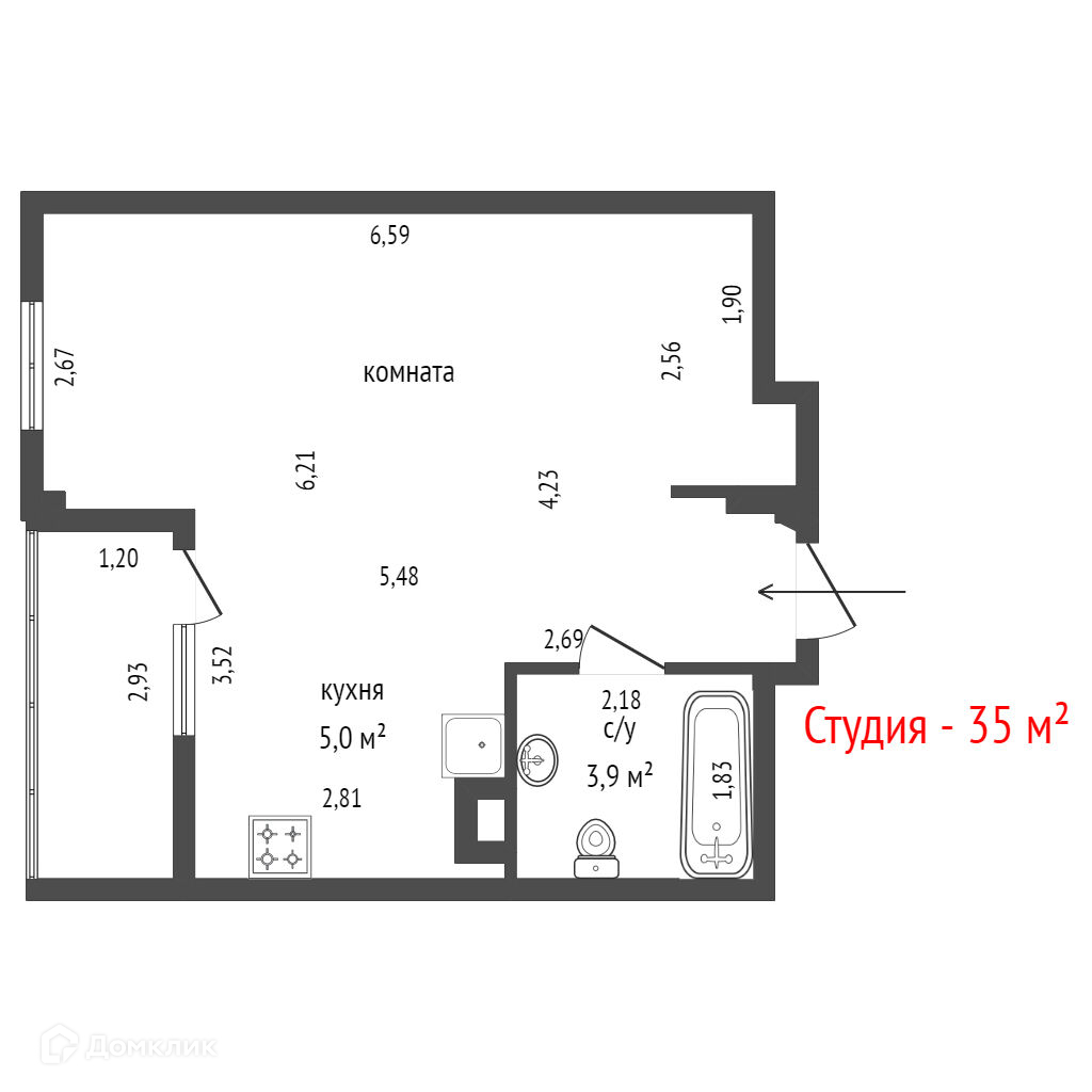 Общая площадь 35 м2