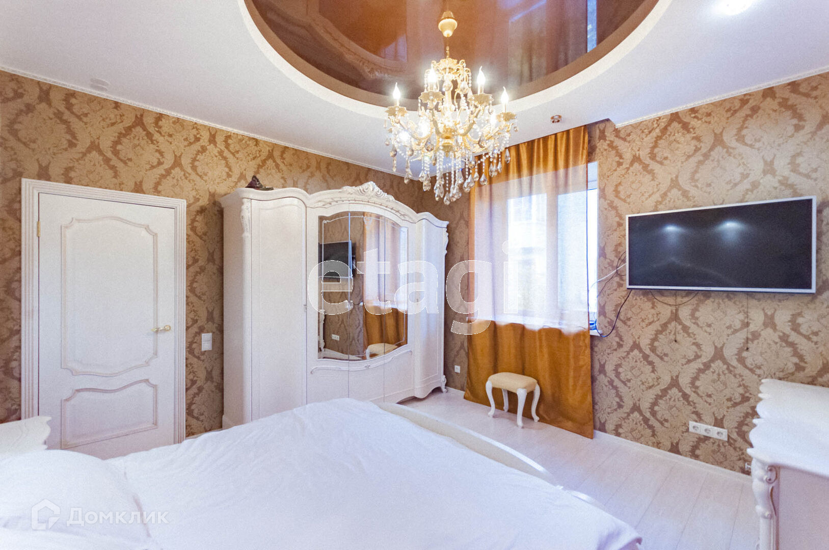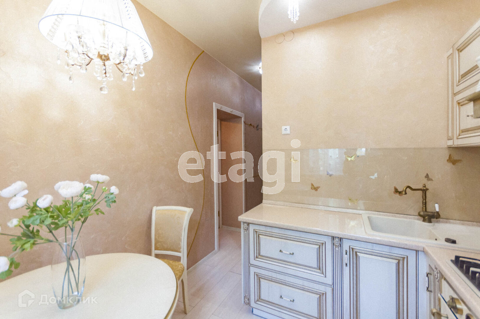 Соврменный кухонный гарнитур в прованском стиле со встроенной техникой,обеденный стол и стулья,2х камерный холодильник так же остается.В спальной осатется спальный гарнтирур,привезенный из Китая.