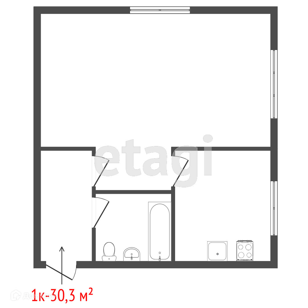 Общая площадь 30.3 м2