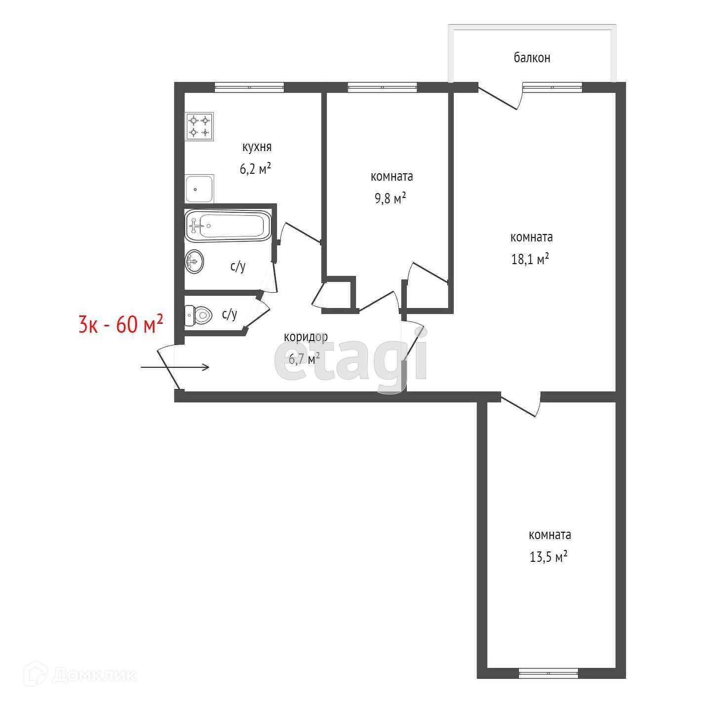 Общая площадь 60 м2