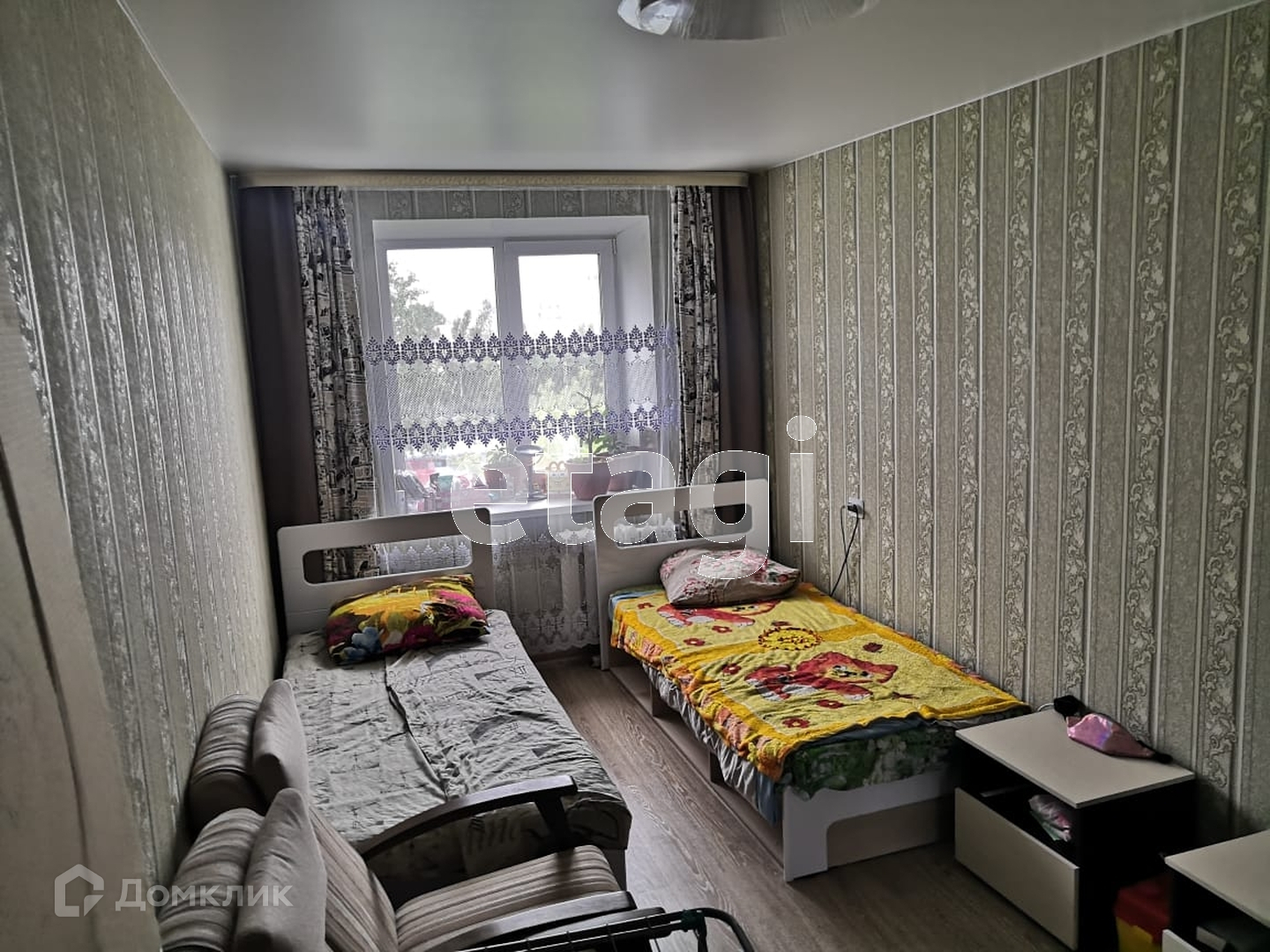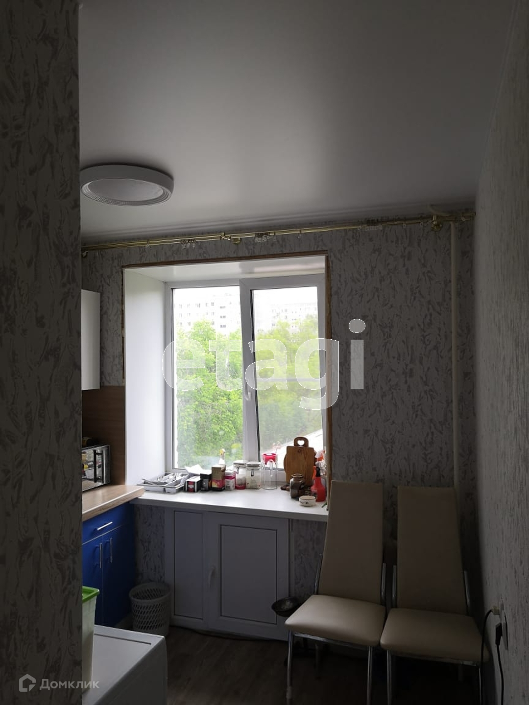 В квартире сделан ремонт:были поменяны полы,внизу керамзит и ГВЛ,на полу представлено ковровое покрытие и ламинат. Натяжные потолки по всей квартире. Межкомнатные двери так же новые, хорошая шумоизоляция,стоят пластиковые окна. Вид из окна во двор. Балкон застеклён. Вся мебель остаётся реальному покупателю!