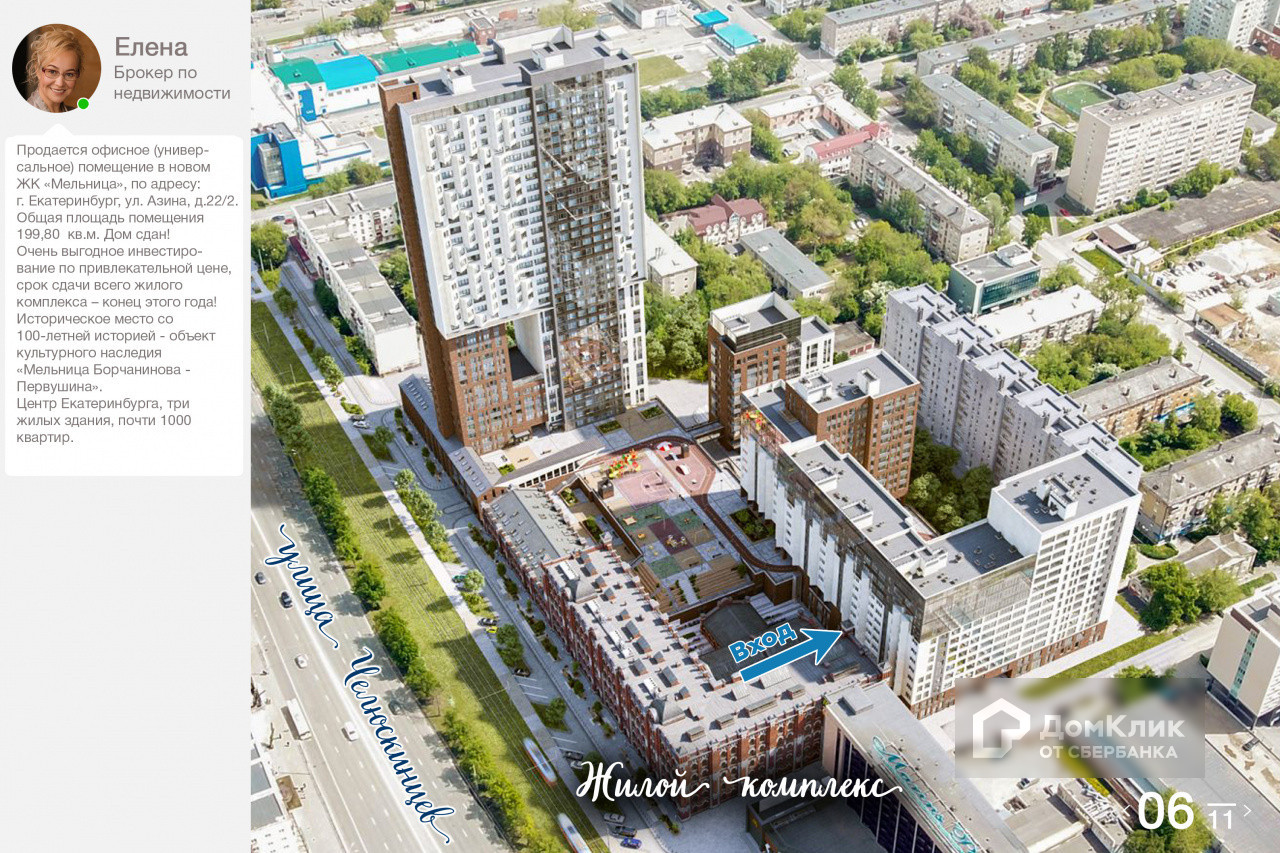 Продается универсальное помещение в новом ЖК «Мельница», по адресу: г. Екатеринбург, ул. Азина, д.22/2. Общая площадь помещения 199,80 кв.м.  Дом сдан!