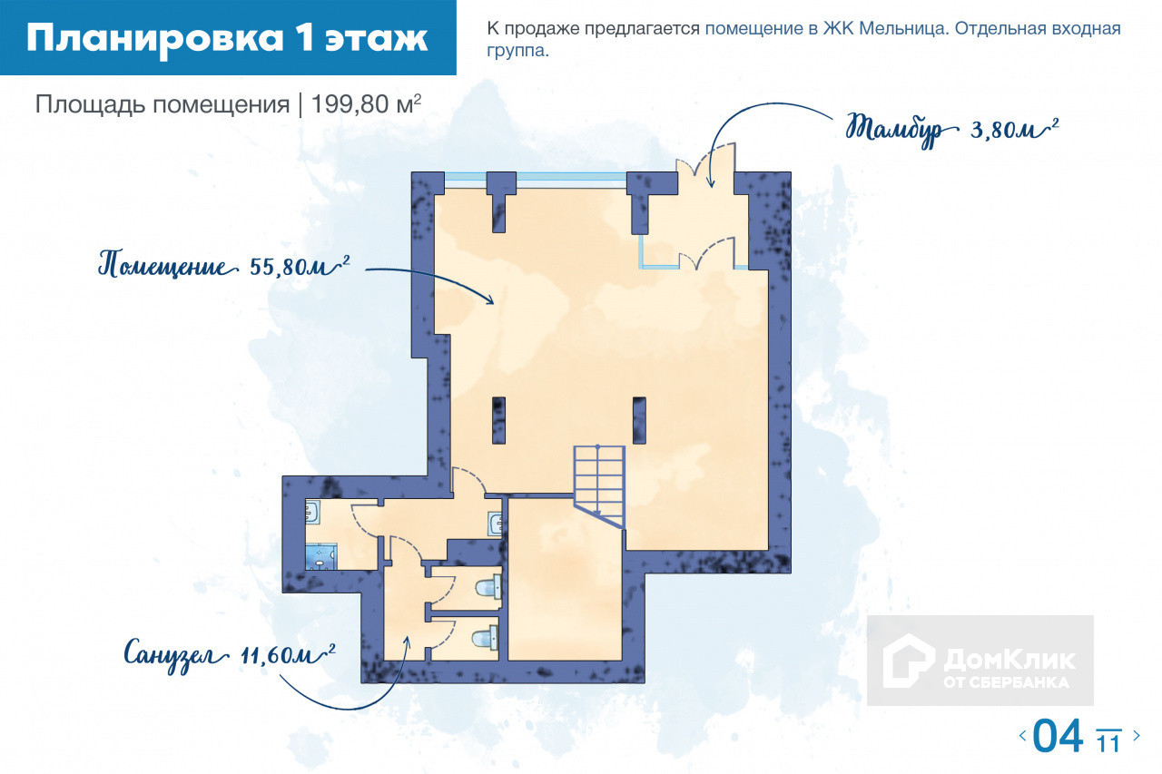 -    помещение свободного назначения – 55,80 м2;