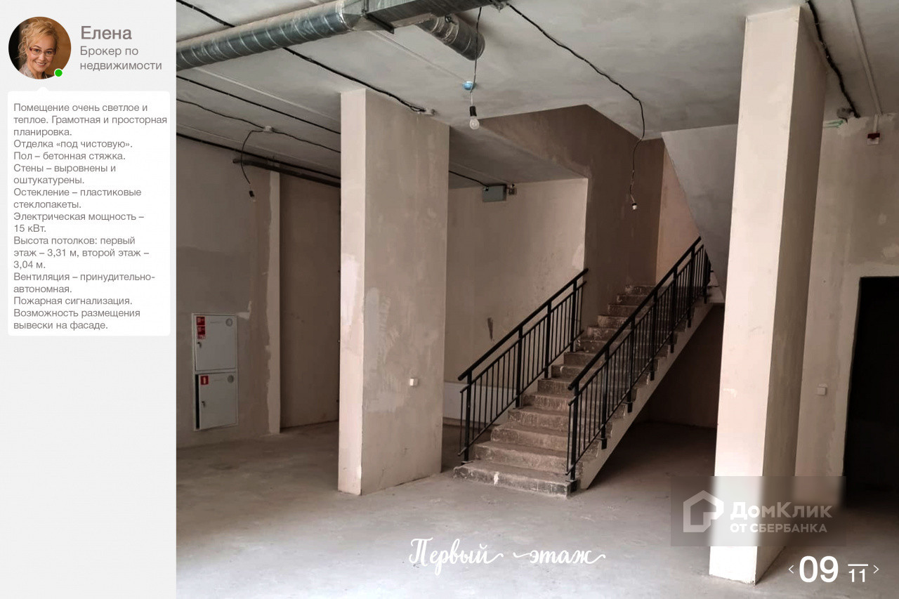 Отделка «под чистовую». Пол – бетонная стяжка. Стены – выровнены и оштукатурены. Остекление – пластиковые стеклопакеты. Электрическая мощность – 15 кВт. Высота потолков: первый этаж – 3,31 м, второй этаж – 3,04 м. Вентиляция – принудительно-автономная. Пожарная сигнализация.