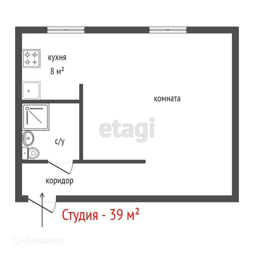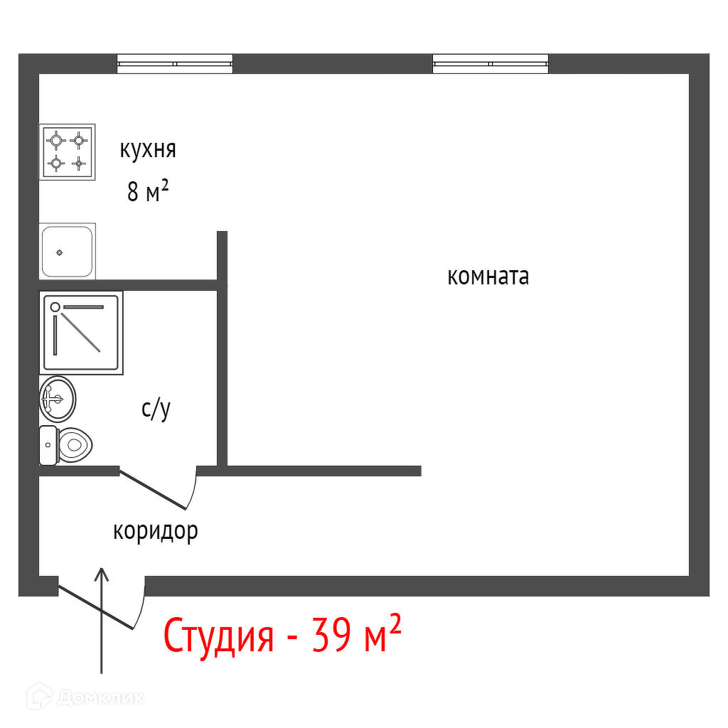 Общая площадь 39 м2