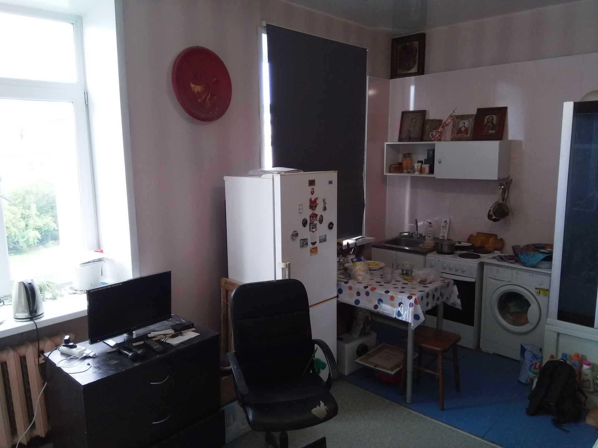 Продается студия коридорного типа в теплом кирпичном доме. В доме высокие потолки - 3,4 м (за счет чего объем помещения становится больше, наряду с аналогами), широкие коридоры, толстые несущие стены. В шаговой доступности Метро "Геологическая", трамваи, автобусы, троллейбусы, удобно добираться в любую точку города. В доме есть продуктовый магазин "Магнит" и парикмахерская. Через дорогу круглосуточная аптека. Рядом с домом KFC. И в целом много различных магазинов в округе. В 5 минутах есть школа и поликлиника, а во дворе детский садик. Чистый подъезд, приличные соседи, есть ответственная старшая по дому и общий чат. Окна выходят в тихий двор. В комнате есть городской телефон, вода, раковина, электрическая плита, стиральная машина, душевая кабина, туалет (можно сделать отдельной комнатой с душевой и унитазом. Если захотите, можно узаконить, есть письменные согласия всех соседей). Большие пластиковые окна, натяжной потолок и хорошая сейф-дверь, защищающая от шума. Пол и электрическая проводка полностью заменены в 2014 году. В юридическом плане все чисто, никаких проблем с бывшими собственниками быть не может. Коммунальные услуги оплачиваются по количеству прописанных, в среднем около 2 тысяч. Возможна ипотека.  Торг.