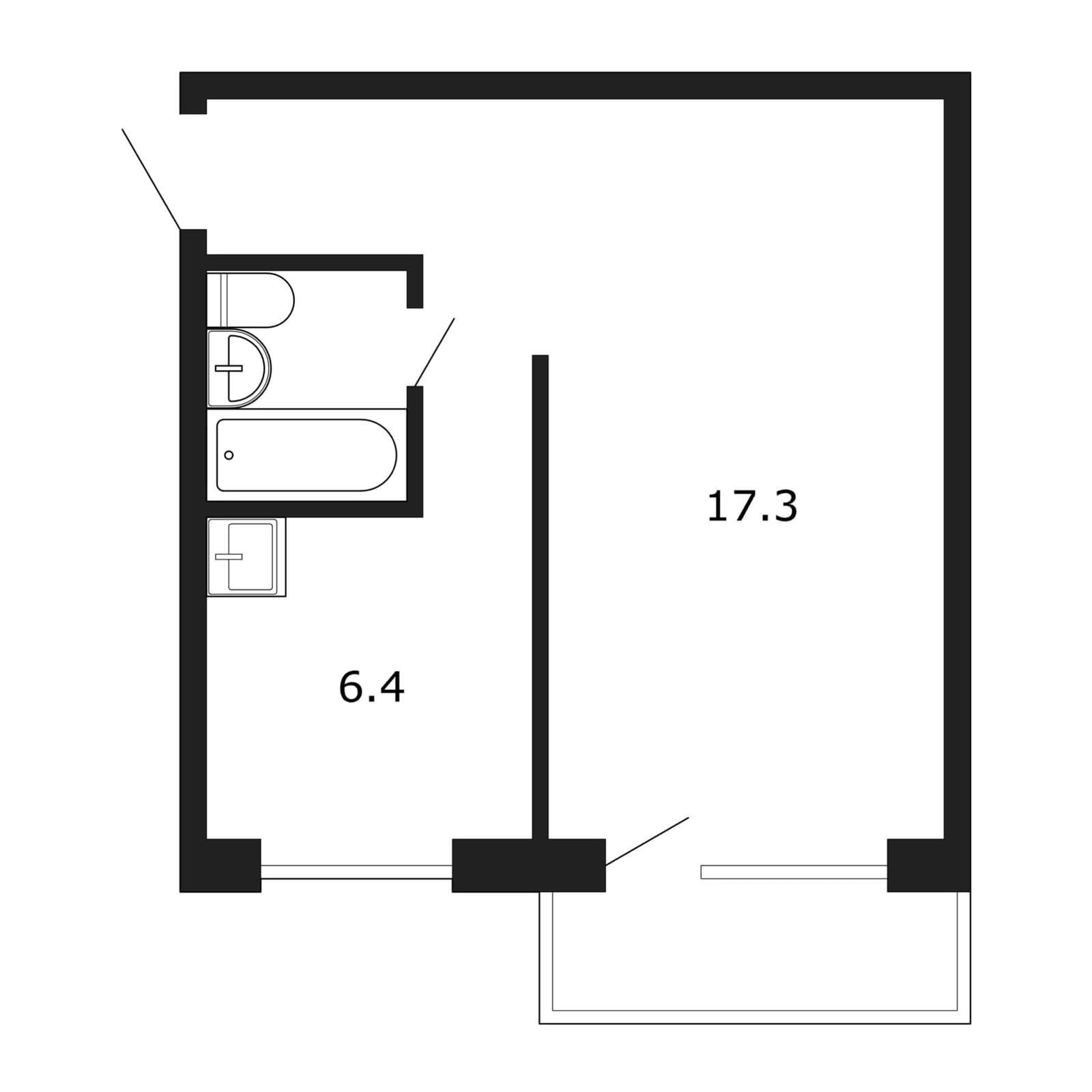 Жилая площадь 17.3 м2
