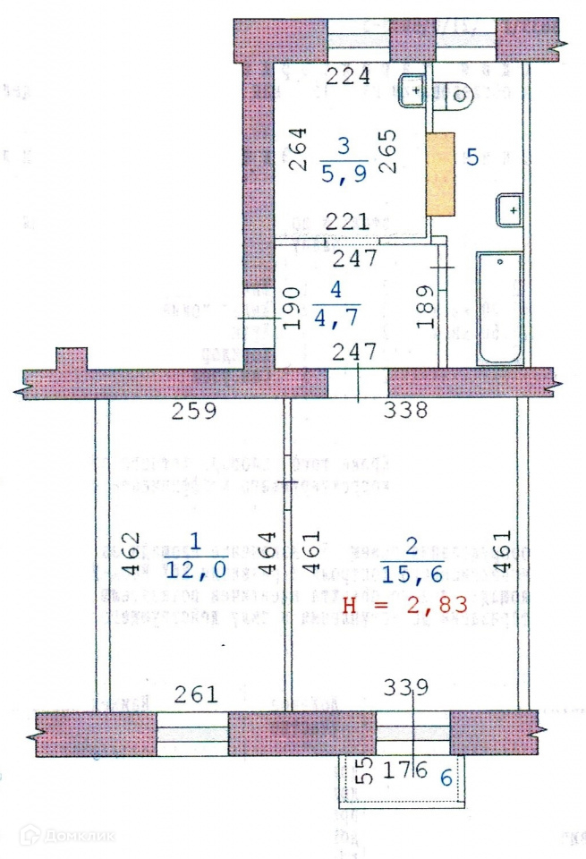 Общая площадь 43.3 м2
