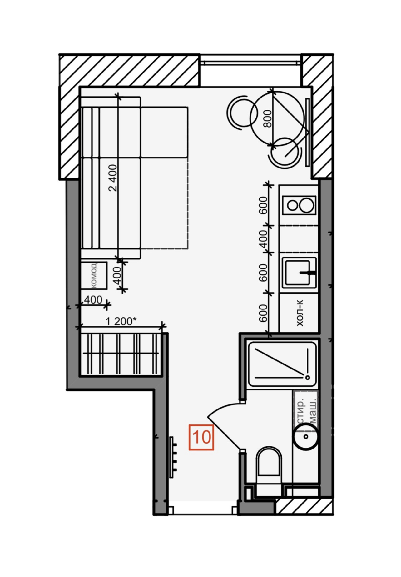 Общая площадь 18.6 м2