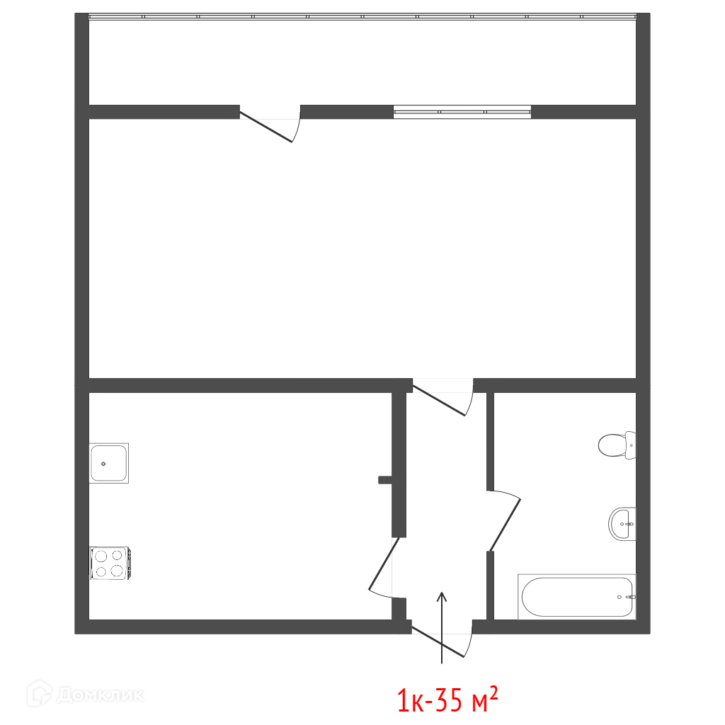 Общая площадь 34.3 м2