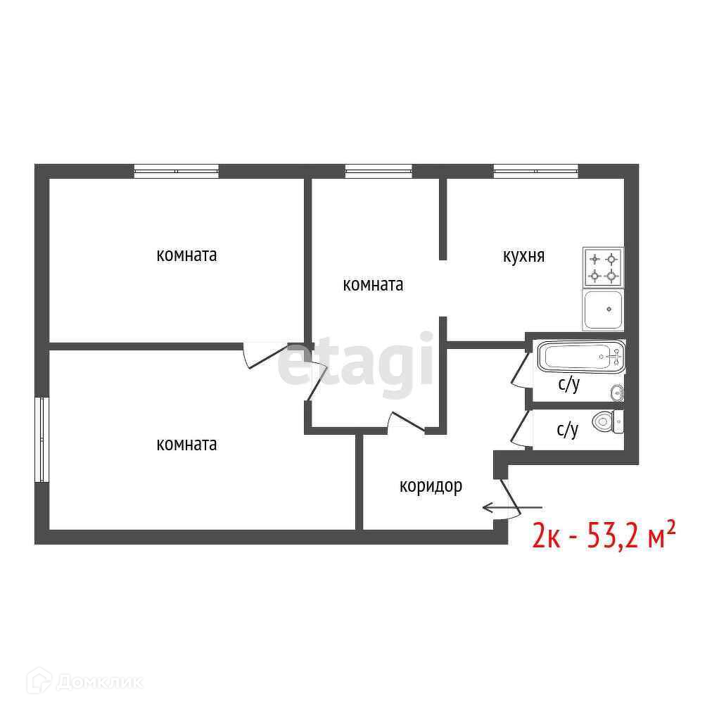 Общая площадь 53.2 м2