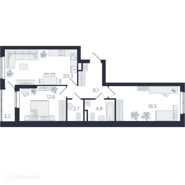 Общая площадь 68.5 м2