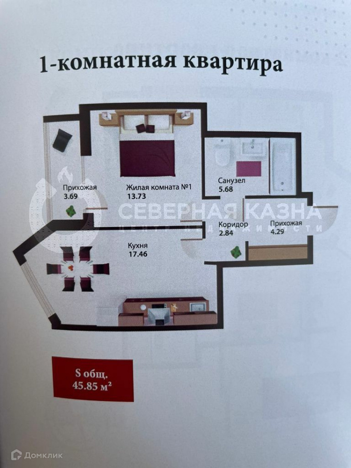 Общая площадь 43 м2