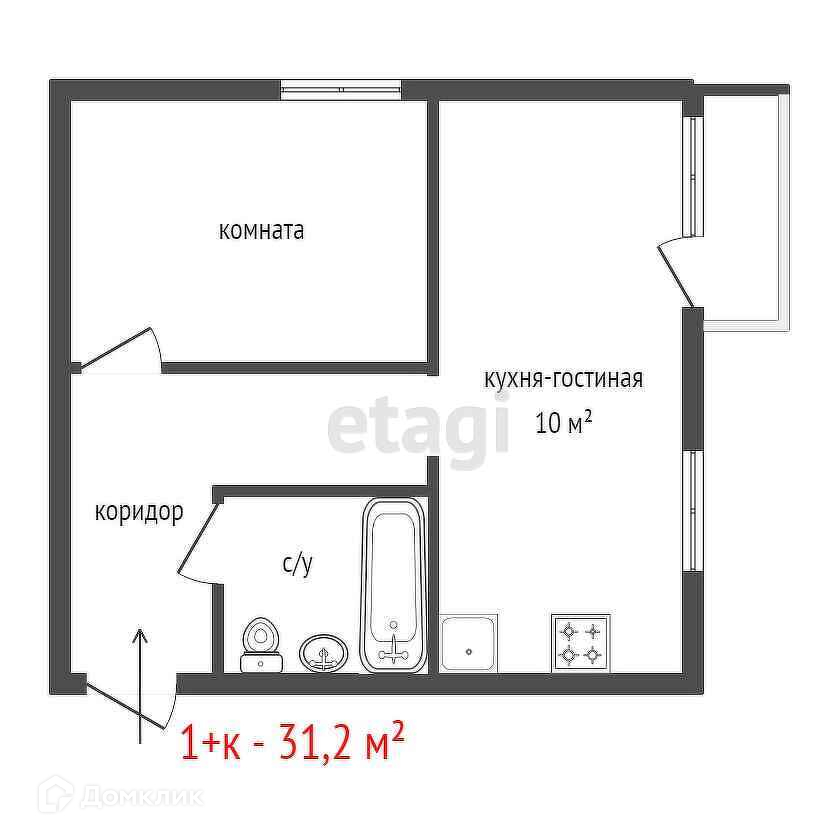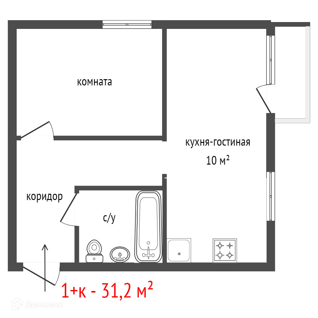 Общая площадь 31.2 м2