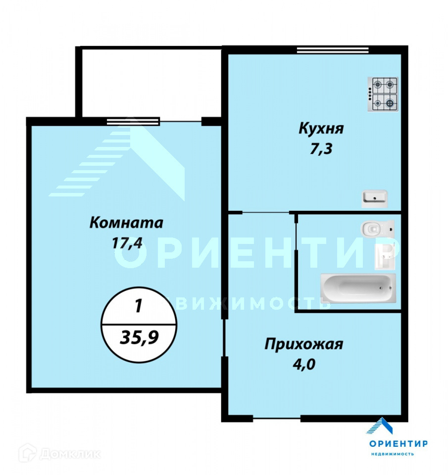 Общая площадь 35.9 м2