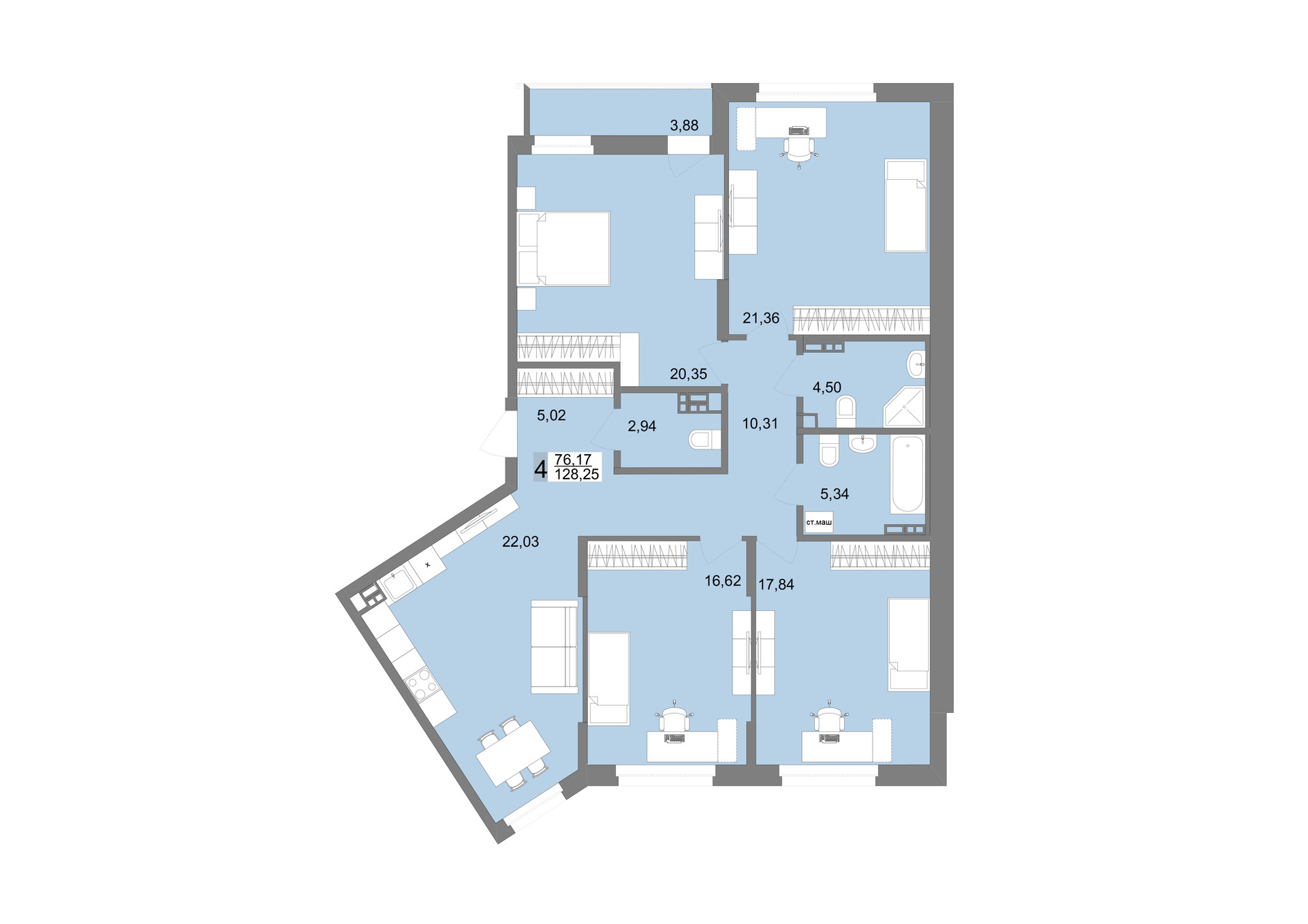 Общая площадь 126 м2