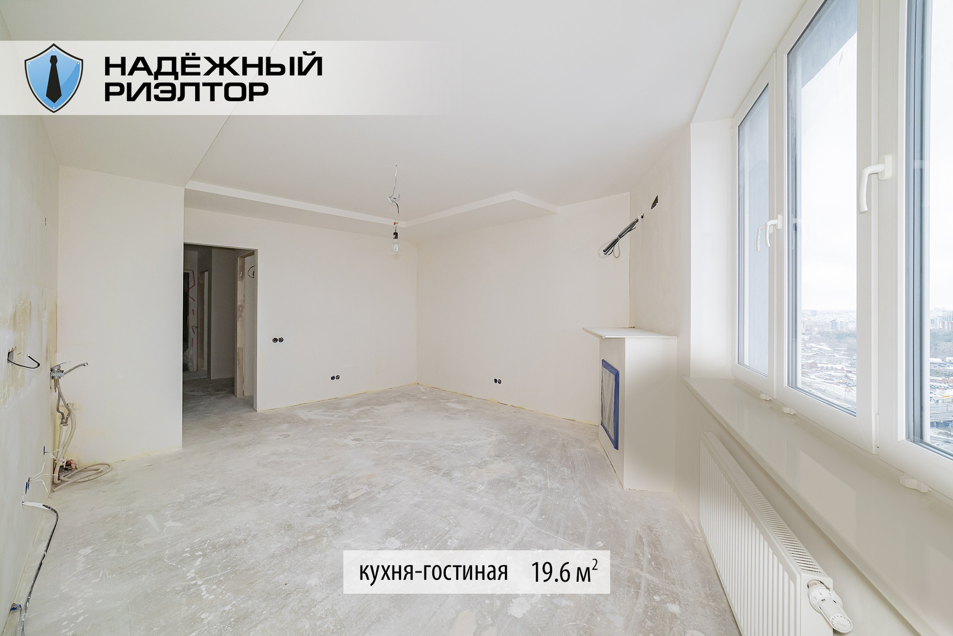 Предлагаем евро-трёхкомнатную квартиру (две спальни + кухня-гостиная) на высоком этаже с предчистовой отделкой (white box) в новом современном доме 2019 года постройки на 32 этаже.