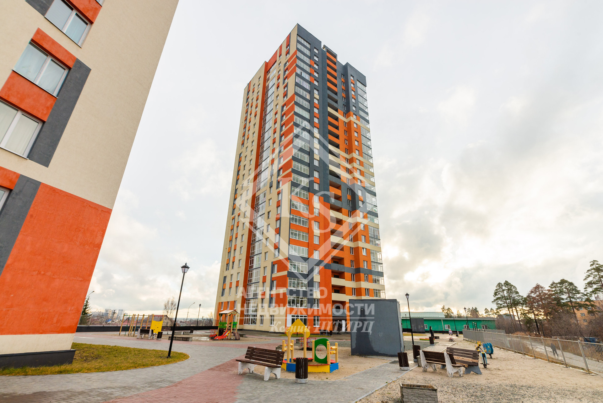 ДВОРОВАЯ ТЕРРИТОРИЯ огорожена от посторонних людей с современной детской площадкой.