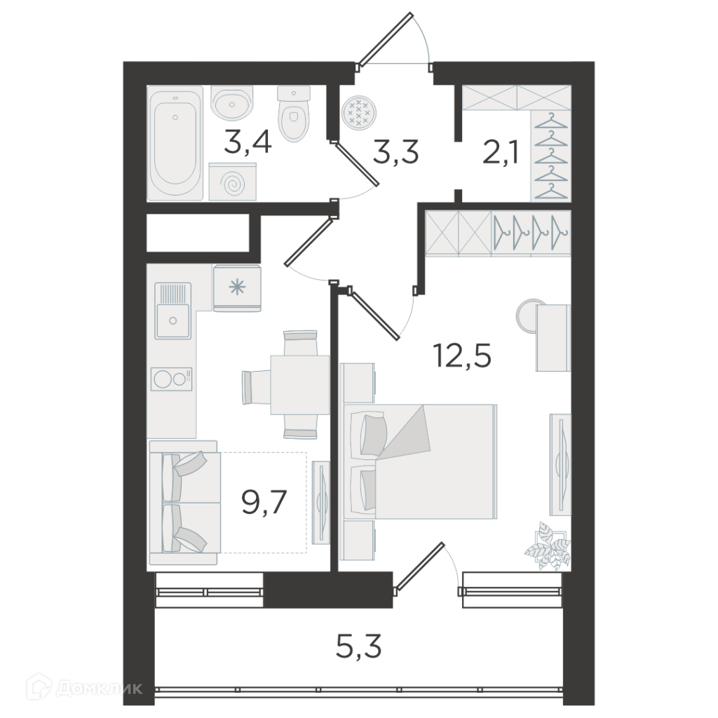 Общая площадь 33.6 м2