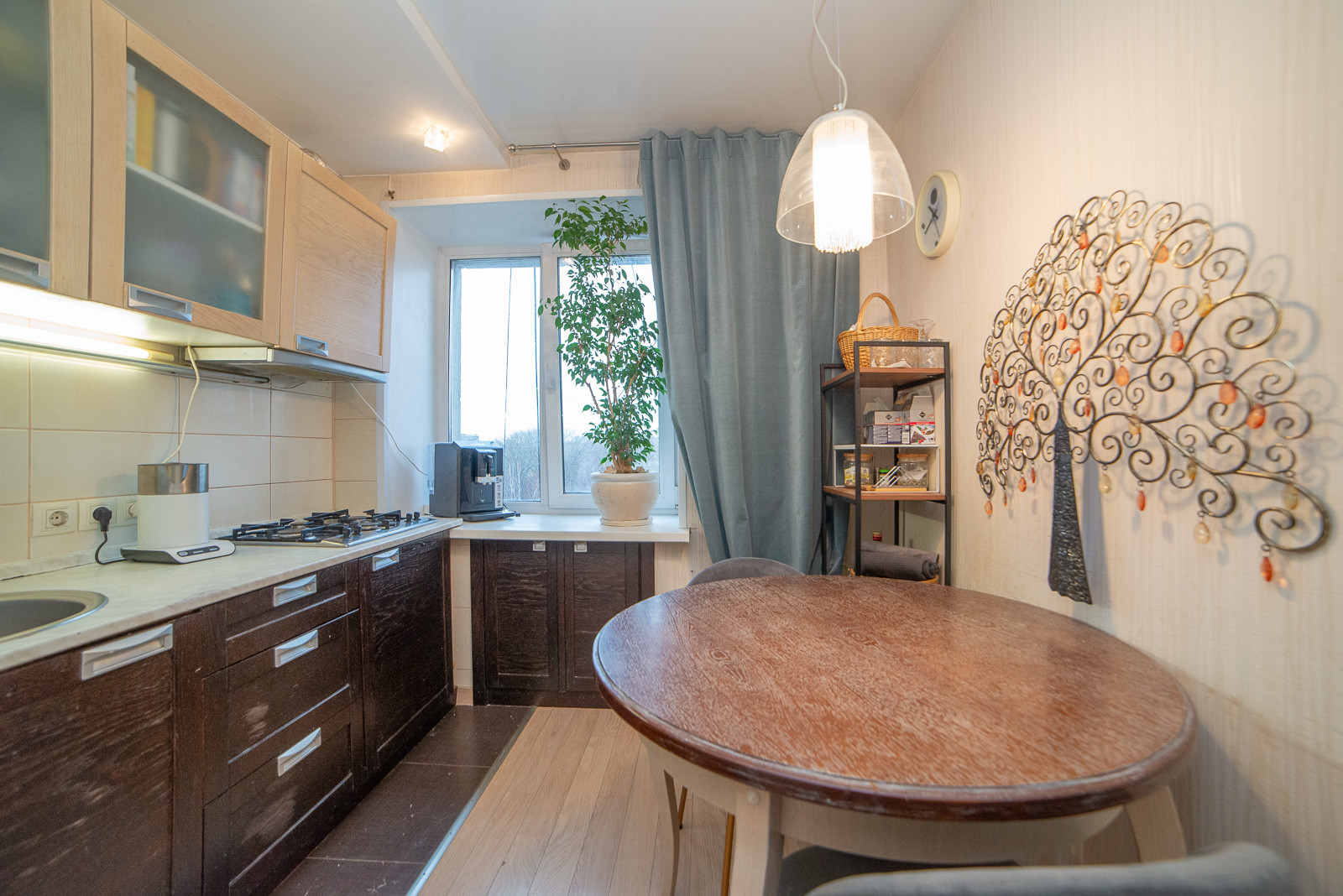 - При продаже в квартире остается: Кухонный гарнитур, варочная поверхность, вытяжка, встроенный шкаф купе в комнате, шкаф в коридоре;