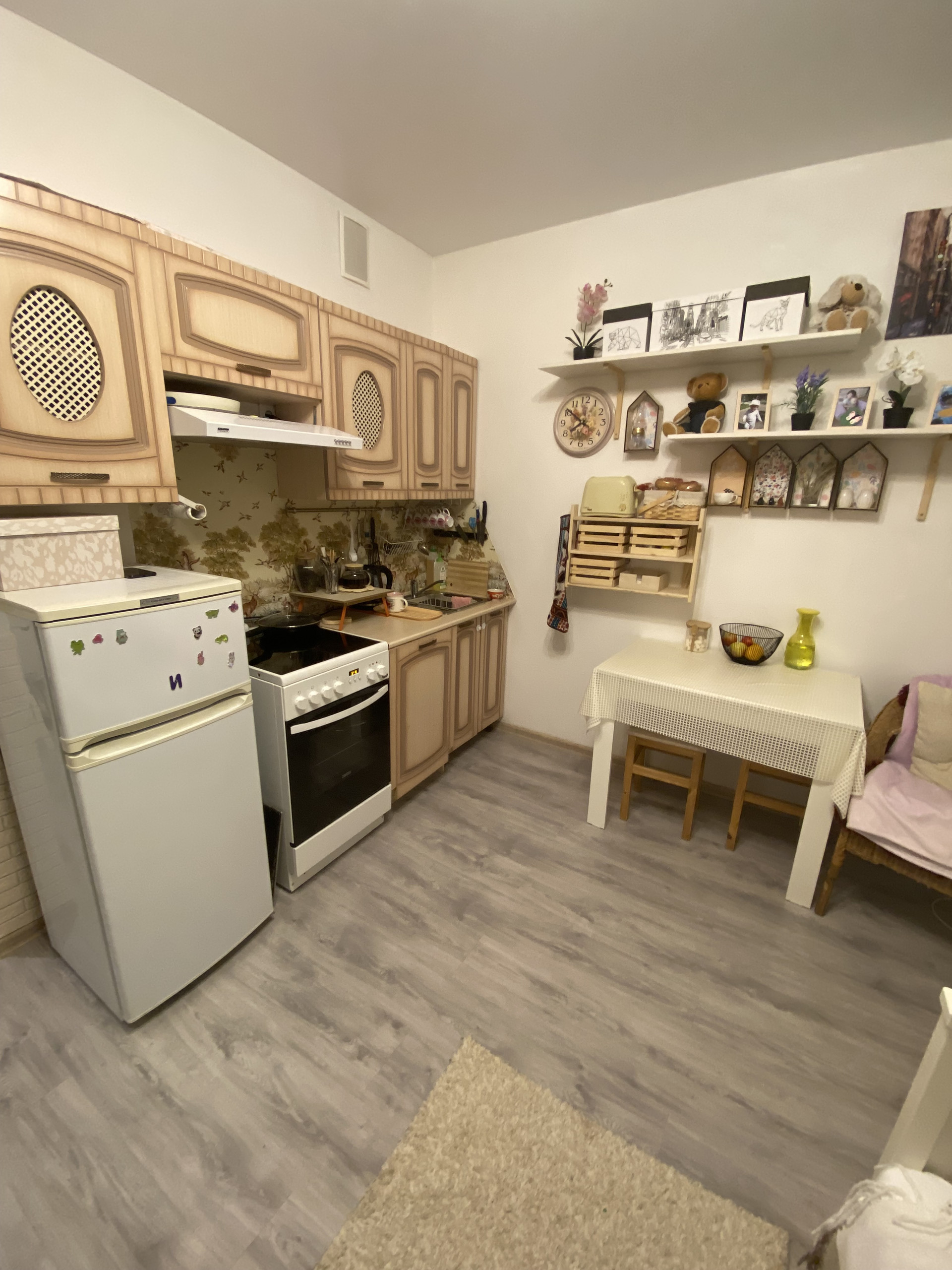 - Остается красивый кухонный гарнитур с вытяжкой , электрической плитой с духовкой и посудомоечной машиной!