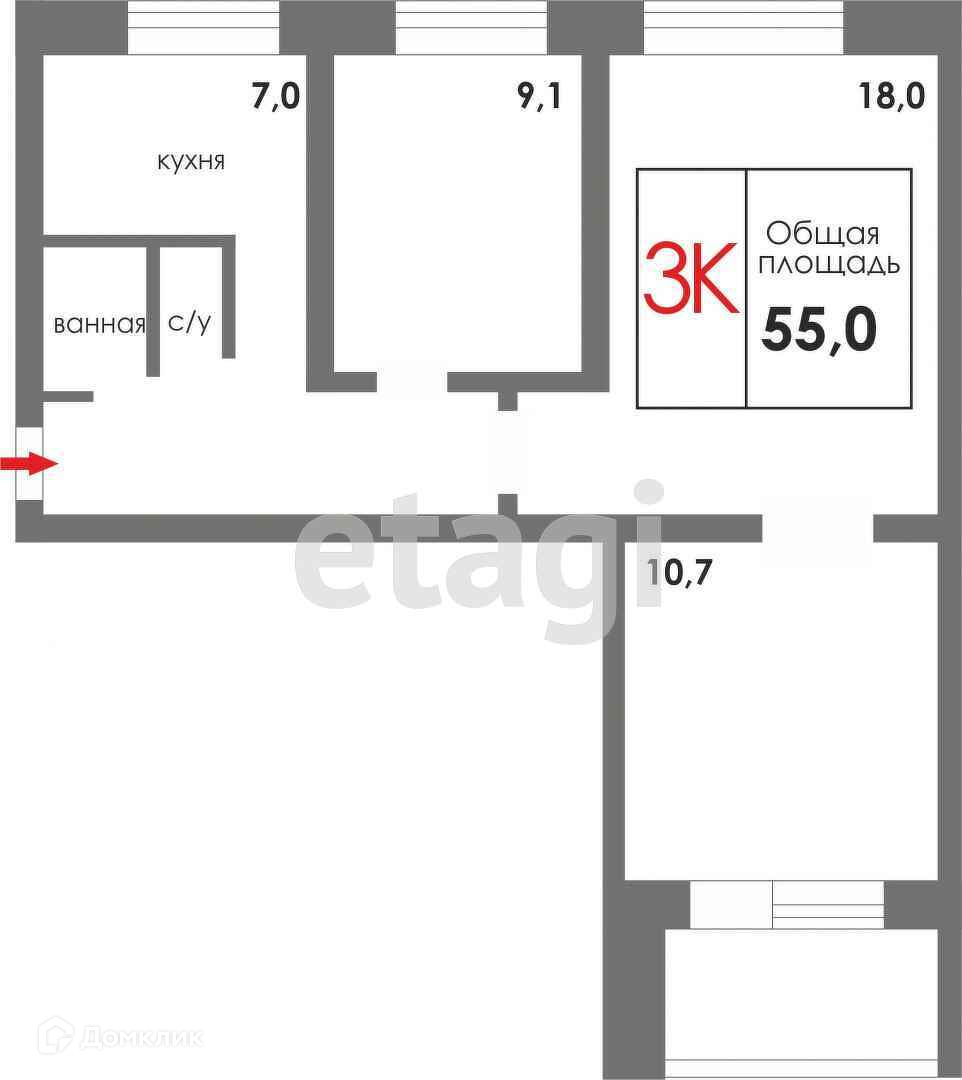 3-комнатная квартира, 54.1 м2, этаж 5 / 9, на продажу в Екатеринбурге, Гражданская улица, 2