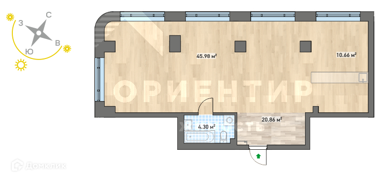 Жилая площадь 46 м2