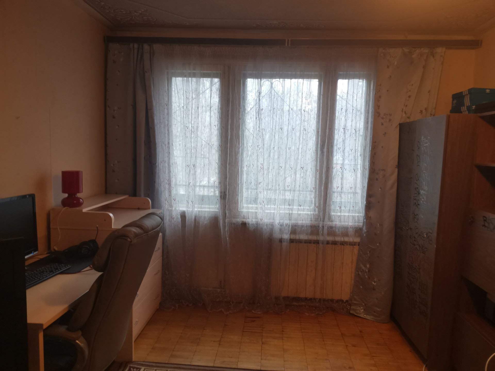 Установлены счётчики на воду, новые батареи в комнате и на кухне.