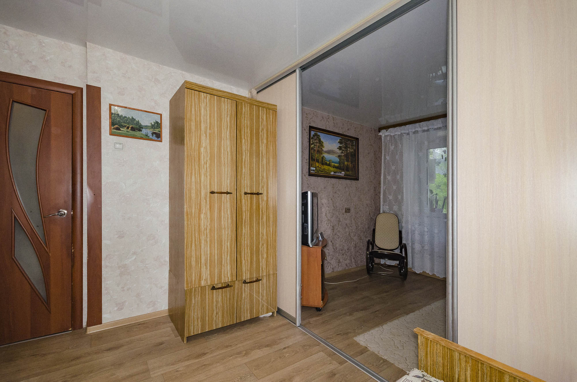 В прихожей установлен удобный шкаф-купе.