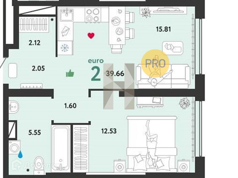 Общая площадь 39.66 м2