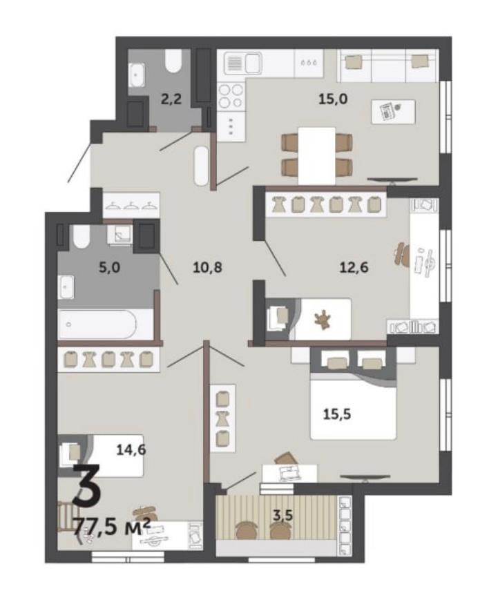 Количество комнат 3