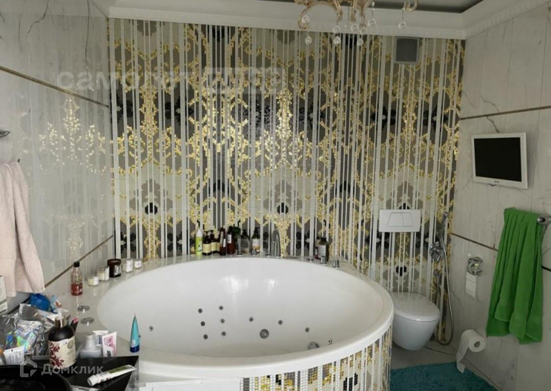 - в ванной кафель, джакузи, душевая кабина, современная стиральная машина,