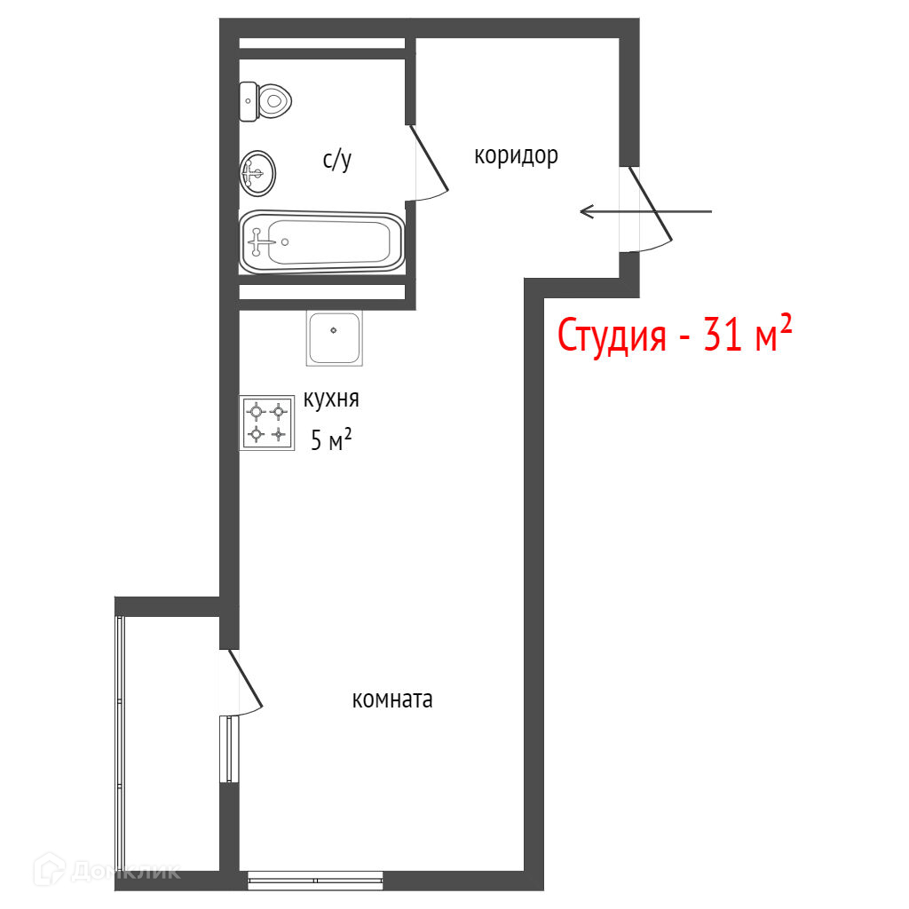 Общая площадь 31 м2