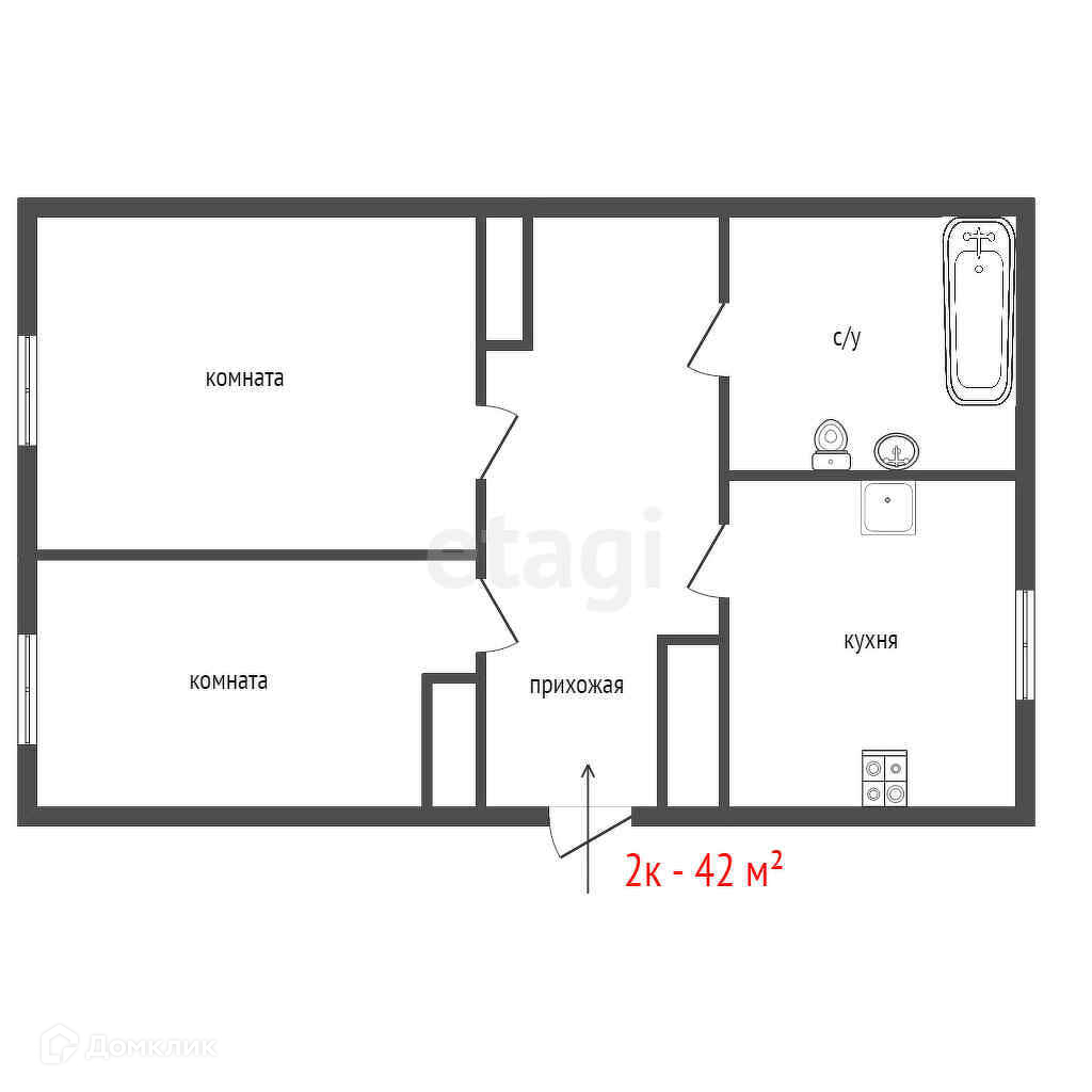 Общая площадь 42 м2
