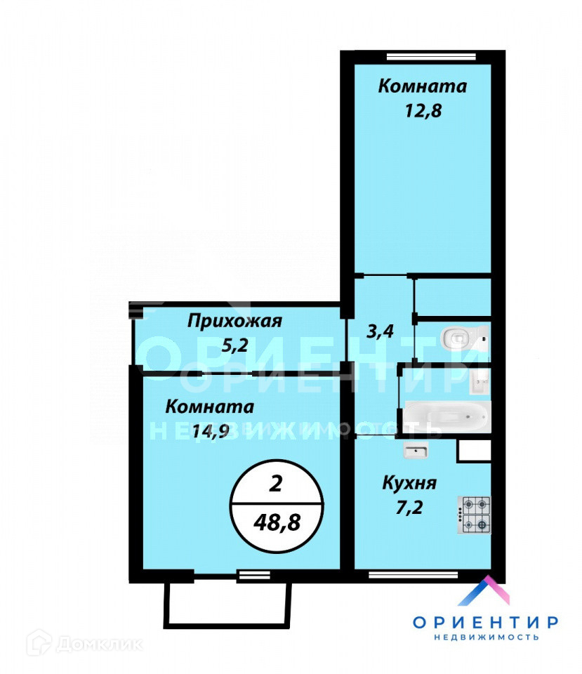 Общая площадь 48.8 м2