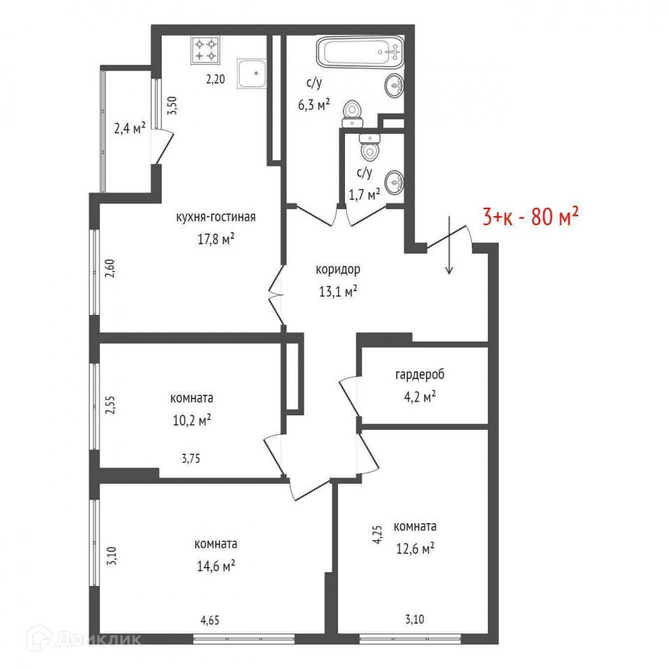 Общая площадь 80 м2