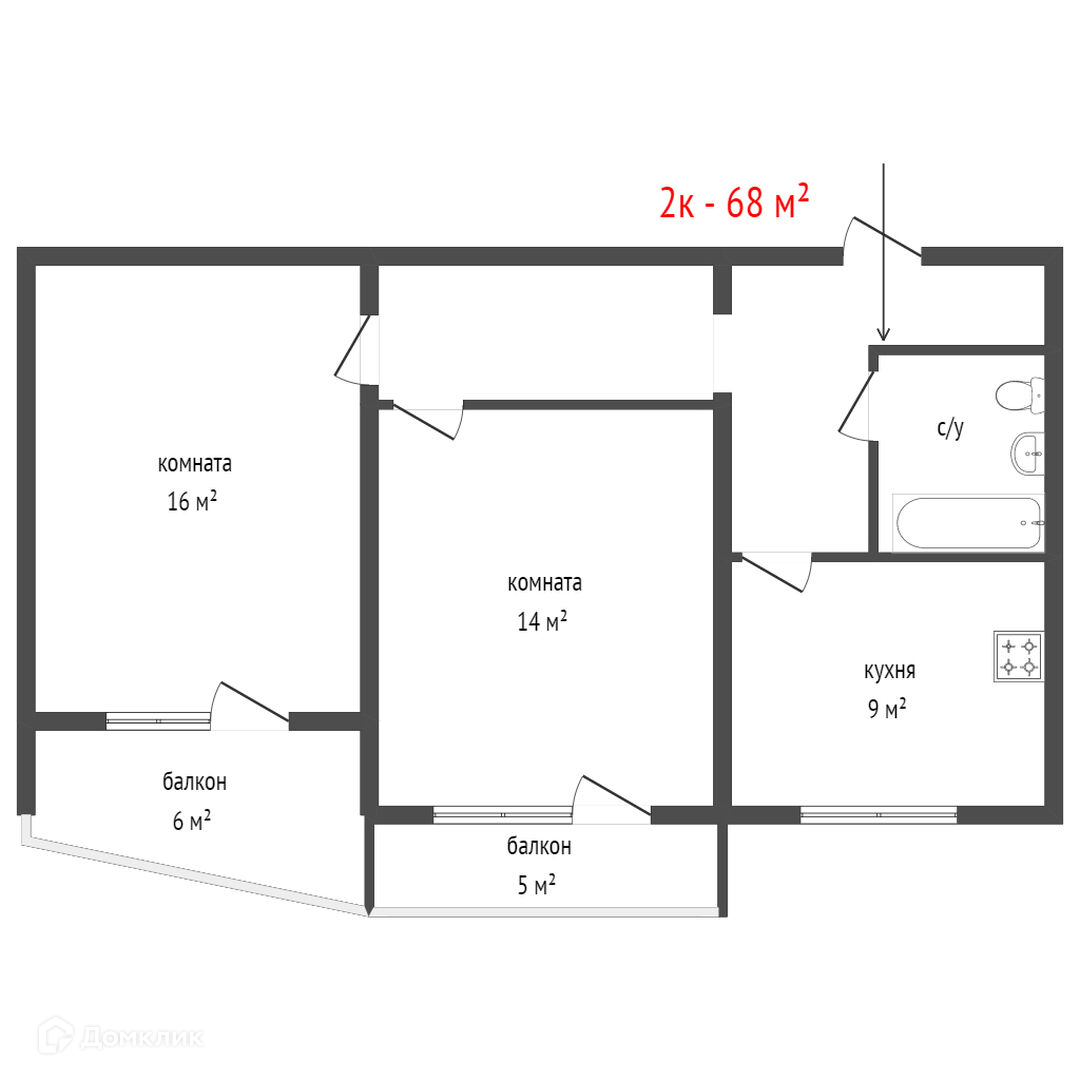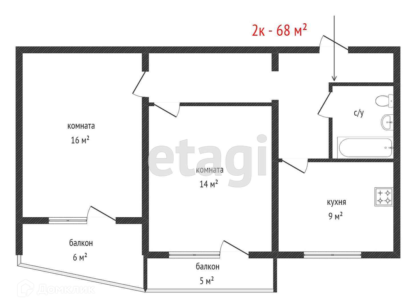 Общая площадь 68 м2