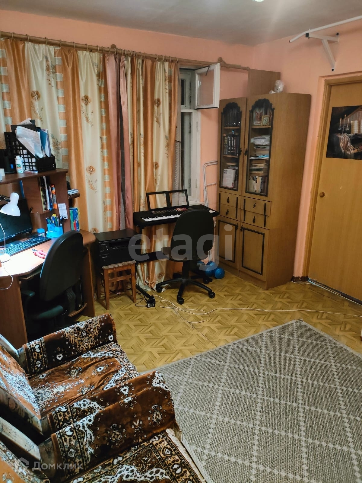 Планировка: проход в дальнюю комнату через гостиную. Сан. Узел совмещен. В прихожей есть место для хранения верхней одежды. Все окна выходят во двор. Есть застекленный балкон.
