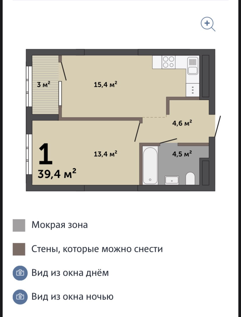Общая площадь 39.4 м2