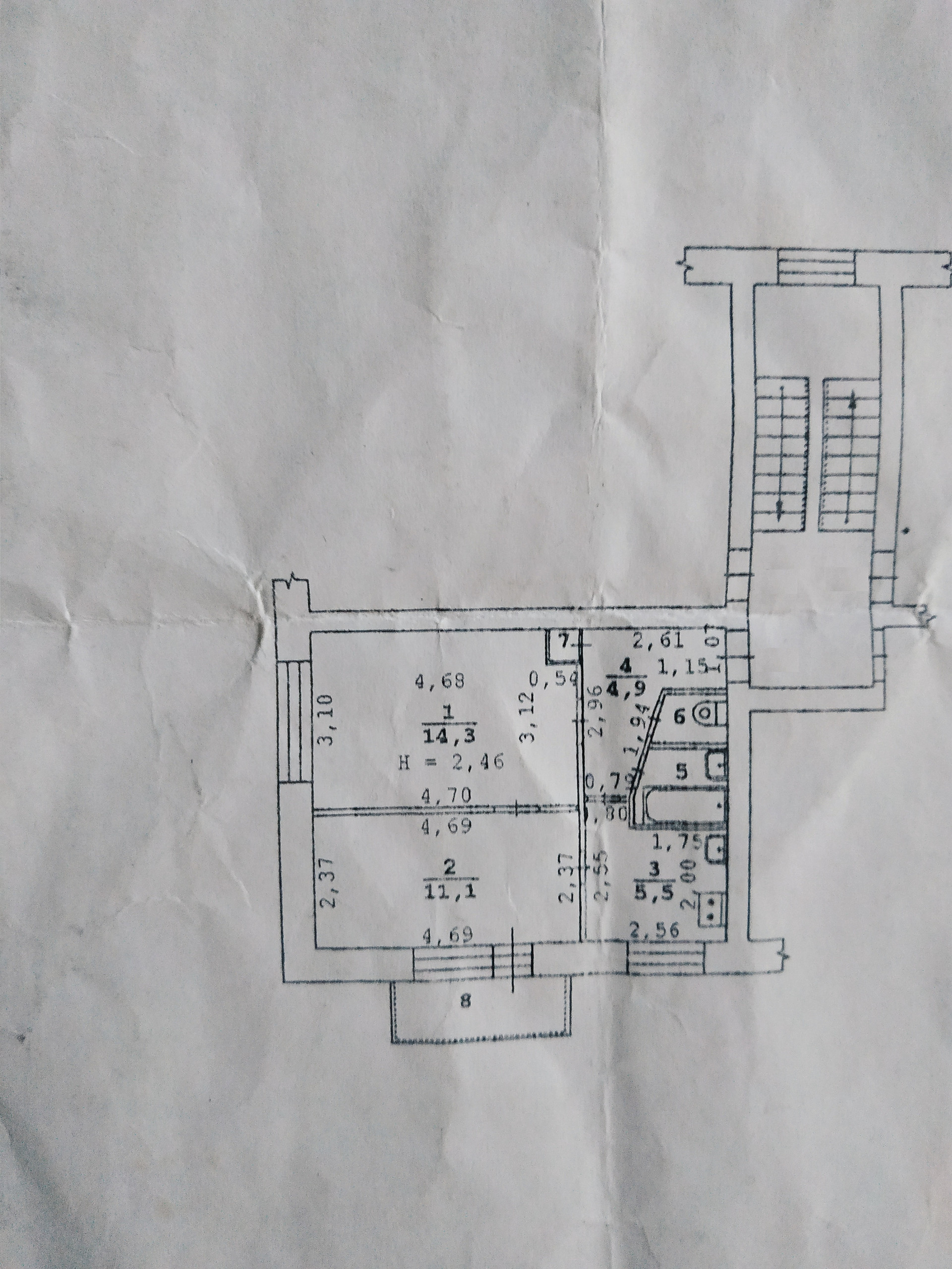 • Квартира по сути с черновой отделкой, при этом, шумные и пыльные работы проведены - снята старая (советская) штукатурка до кирпича, стены выровнены и отштукатурены, демонтированы старый деревянный пол и все встроенные советские шкафы, комнаты изолированы, демонтирована стена в санузле, электрощиток с новыми проводами занесен в квартиру.