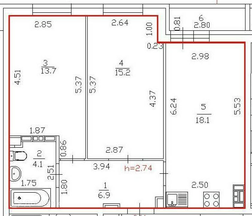 Общая площадь 58 м2