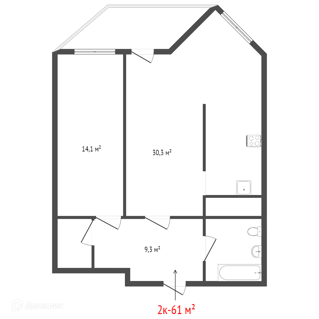 Общая площадь 61 м2