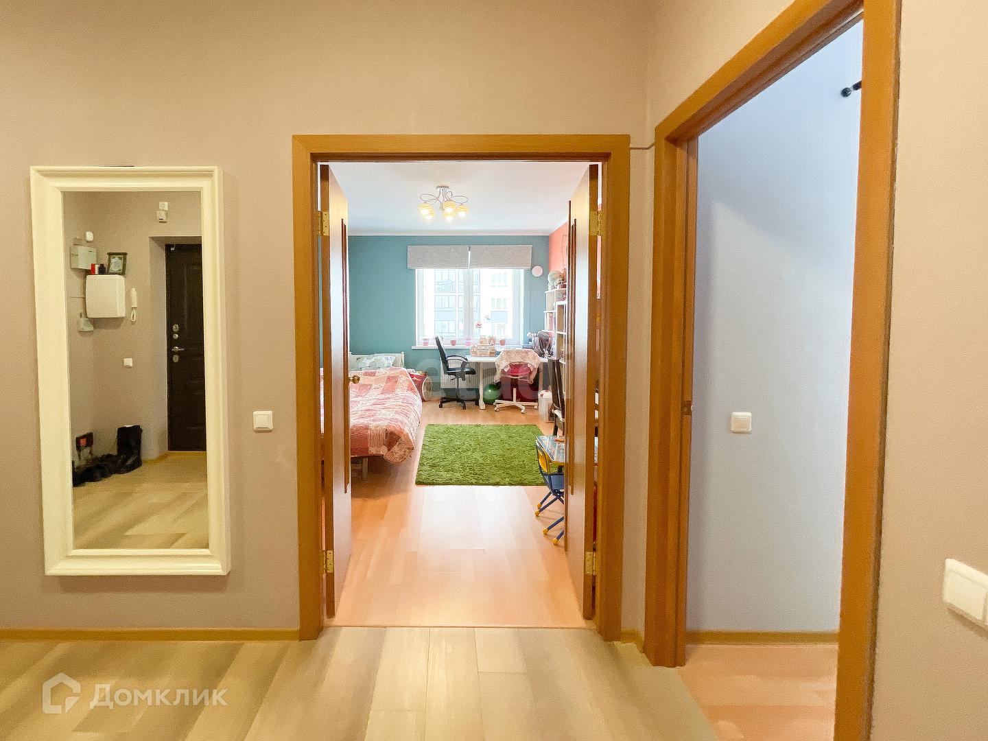 В квартире два с/у, гардеробная комната. Остаётся кухонный гарнитур фирмы Мария с бытовой техникой (Посудомоечная машина, духовой шкаф, индукционная плита, вытяжка, вся техника Bosch, установлен большой бойлер - вода чище и нет зависимости от опрессовок).