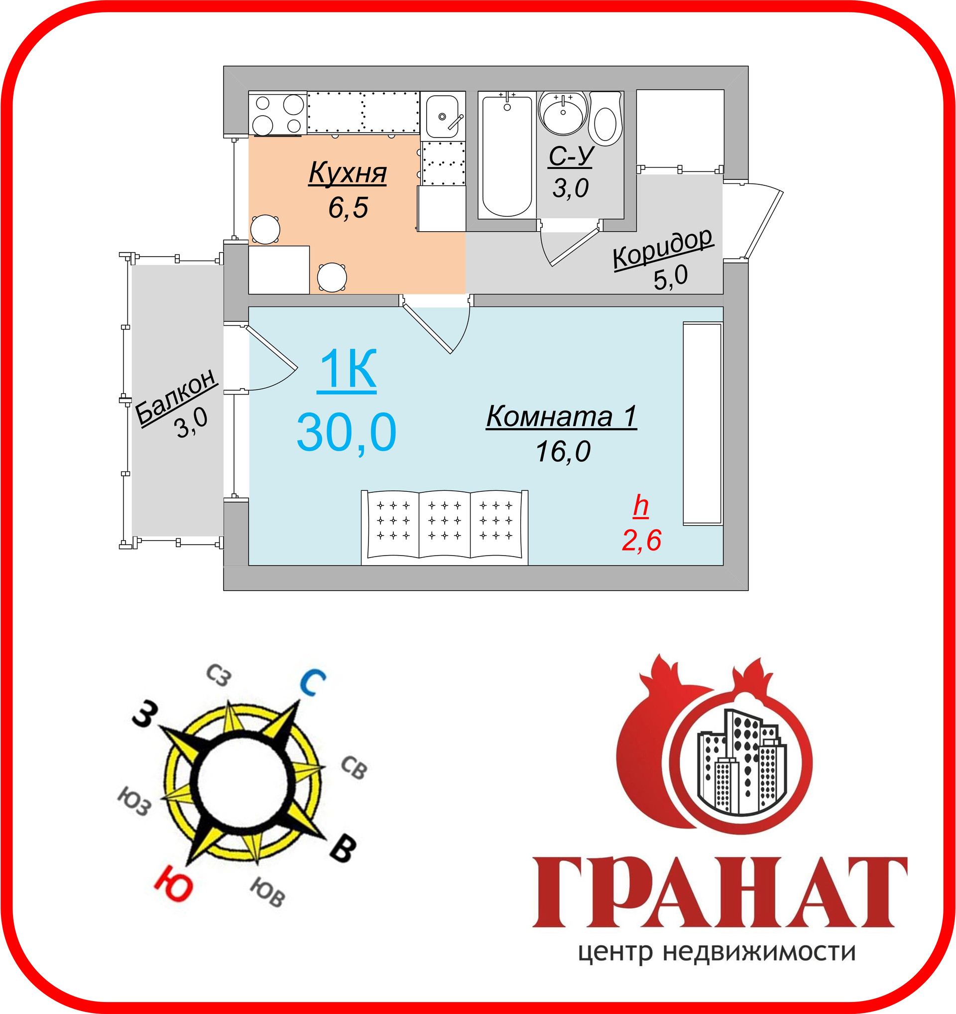 Общая площадь 30 м2
